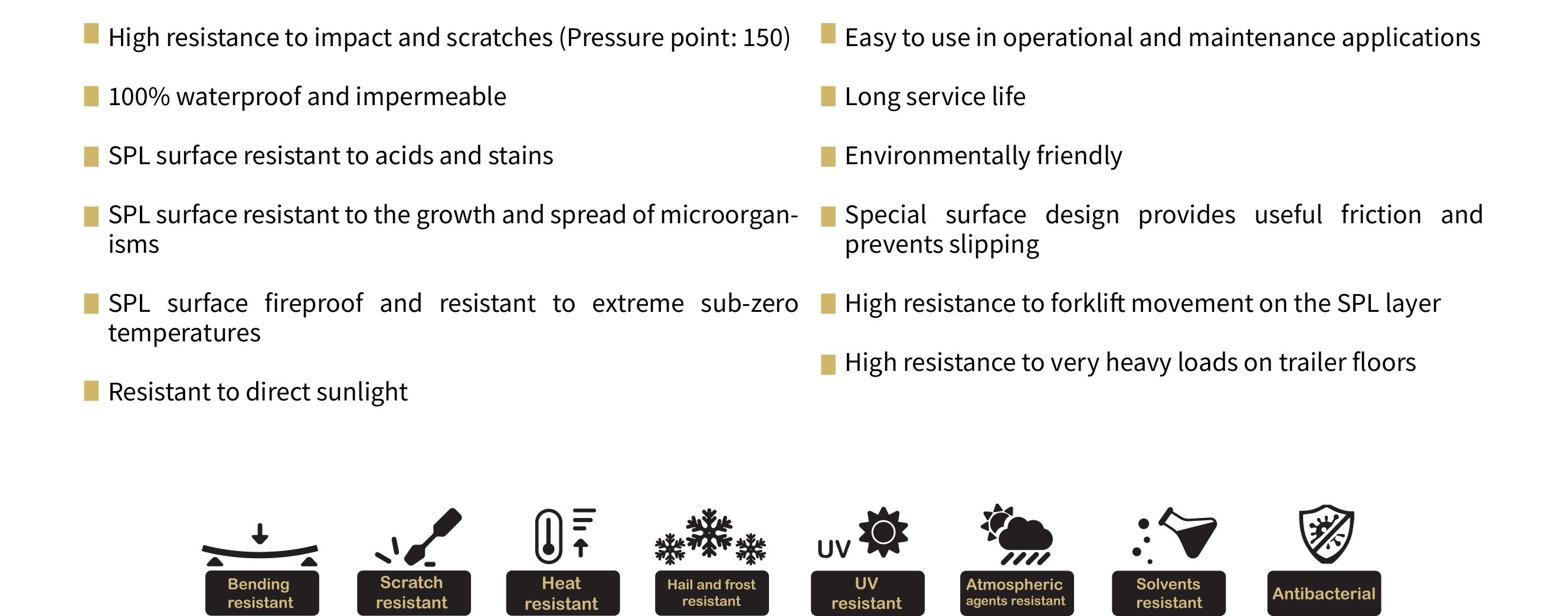 The combination of SPL boards and plywood has produced ultra-durable panels that retain their original features while gaining new synergistic properties. We take pride in maintaining these enhanced characteristics at the highest level, ensuring the product's performance and quality across different applications.